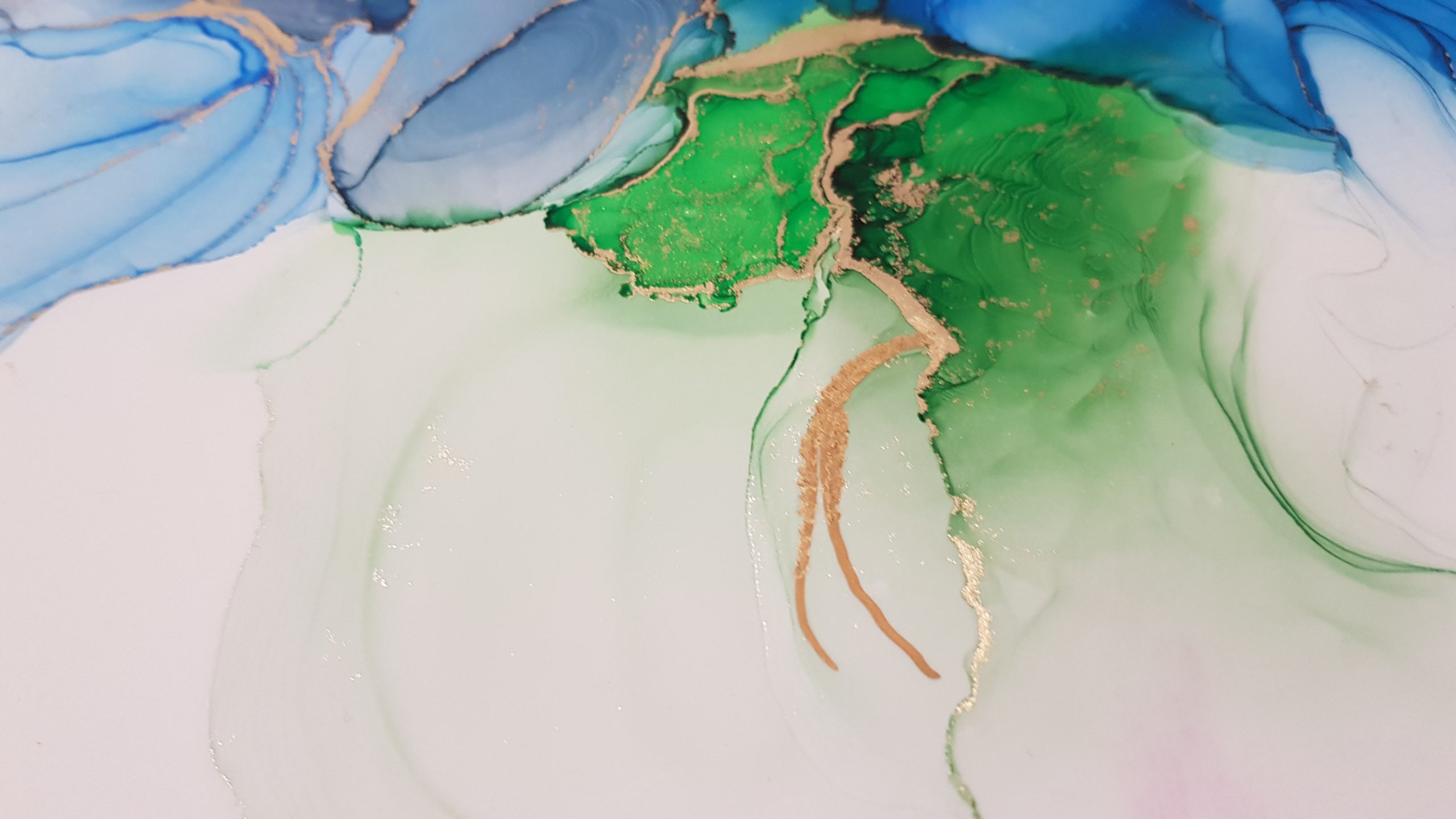 Original alcohol ink artwork on synthetic paper glued to an extra light foam-board (ready to hang it).